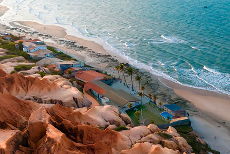 Descrição: O Morro Branco, em Beberibe, é um dos destinos mais fascinantes do litoral, famoso por suas falésias coloridas e paisagens de tirar o fôlego. O cenário, formado por areias de tons vibrantes e contrastes marcantes entre o mar azul e as rochas, é ideal para fotos e passeios inesquecíveis. Entre as principais atrações está o labirinto das falésias, um percurso natural esculpido pelo tempo que revela a beleza única da região. Além disso, é possível realizar passeios de buggy, visitar as lagoas próximas e conhecer o artesanato local, feito com as areias coloridas extraídas dali. Combinando natureza exuberante, cultura e tranquilidade, o Morro Branco é um destino imperdível para quem busca experiências autênticas e cenários memoráveis.