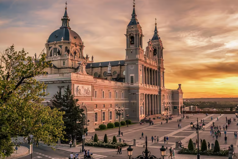 Descrição: Em frente ao Palácio Real, ergue-se a majestosa Catedral de la Almudena, uma das mais emblemáticas de Madrid. Sua construção, iniciada no século XIX e concluída apenas em 1993, combina estilos gótico, neoclássico e moderno. O interior impressiona pela luminosidade e pelos detalhes artísticos, com vitrais coloridos e uma cúpula que oferece vista panorâmica da cidade. A cripta neorromânica, silenciosa e imponente, abriga túmulos de nobres e figuras religiosas. É também o local onde o rei Felipe VI celebrou seu casamento, reforçando o vínculo entre fé e tradição. A Almudena não é apenas um templo, mas um símbolo de devoção e identidade madrilenha. Seu sino ecoa sobre as ruas antigas, lembrando que Madrid é uma cidade onde o sagrado e o cotidiano caminham lado a lado.