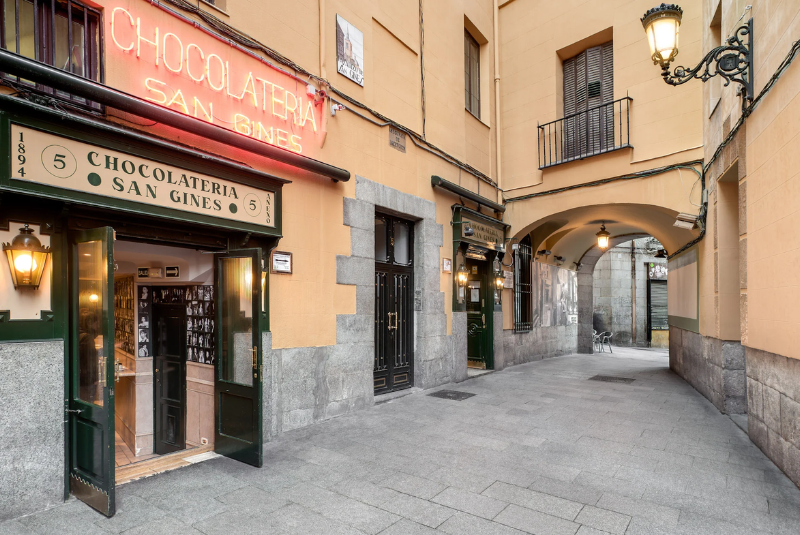 Descrição: A Chocolatería San Ginés, fundada em 1894, é uma verdadeira instituição madrilenha. Escondida em um beco próximo à Puerta del Sol, é famosa pelos irresistíveis churros com chocolate quente, uma combinação que virou tradição entre locais e turistas. Aberta quase 24 horas por dia, é o ponto perfeito para começar o dia ou encerrar uma noite animada. O ambiente mantém o charme antigo, com azulejos brancos, espelhos dourados e mesas de mármore. Durante décadas, foi frequentada por escritores, artistas e boêmios que buscavam refúgio no sabor e no aconchego do local. Tomar chocolate com churros na San Ginés é um ritual madrilenho imperdível — simples, doce e memorável. Uma pausa deliciosa que traduz o espírito acolhedor e prazeroso da cidade.