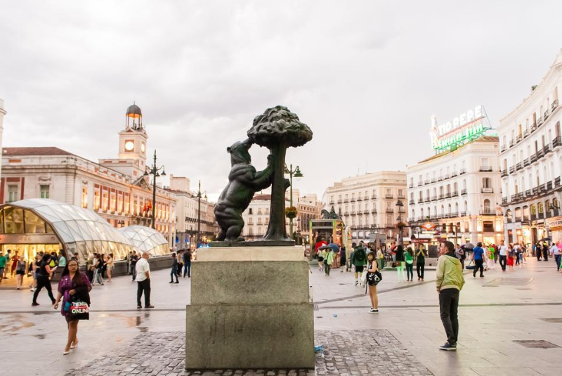 Descrição: A Puerta del Sol é o verdadeiro ponto zero de Madrid — tanto geograficamente quanto espiritualmente. É ali que as distâncias da Espanha são medidas e onde os madrilenhos se reúnem para celebrar o Ano Novo, comendo as tradicionais doze uvas ao som dos sinos. A praça fervilha de energia, com músicos, artistas e o emblemático urso com o madroño, símbolo da cidade. Cercada por edifícios históricos e lojas icônicas, é um local que nunca dorme. O relógio da Casa de Correos marca o tempo e as histórias que passam por ali. Estar na Puerta del Sol é sentir o coração de Madrid bater — intenso, alegre e acolhedor. Cada passo revela um fragmento da vida madrilenha em sua forma mais autêntica.