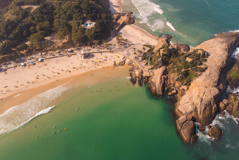 Descrição: O Recreio dos Bandeirantes é ideal para quem busca contato com a natureza e tranquilidade. Suas águas cristalinas e extensão de areia preservada atraem surfistas, famílias e amantes do ecoturismo. O Pontal do Recreio oferece trilhas curtas com vistas panorâmicas do litoral, especialmente encantadoras ao amanhecer. A praia mantém um clima mais natural, distante da agitação urbana, preservando a beleza do mar e da vegetação nativa. Quiosques simples, areia limpa e segurança contribuem para a experiência relaxante. É o refúgio perfeito para contemplar o oceano, praticar esportes ao ar livre ou aproveitar momentos de descanso em família. O Recreio traduz o Rio mais autêntico, onde a natureza e a serenidade predominam.