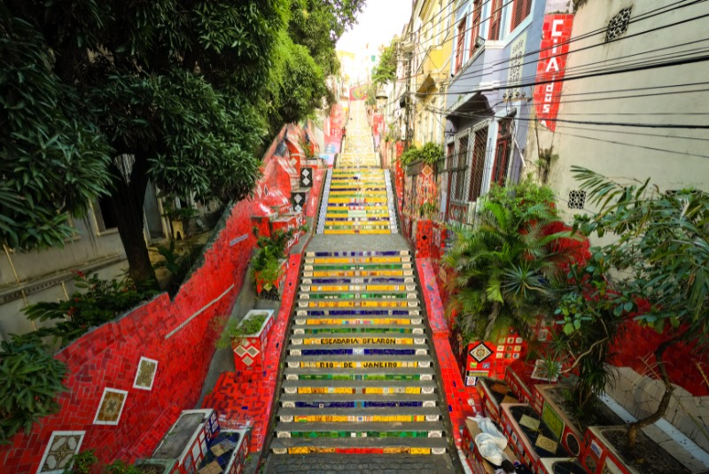 Descrição: A Escadaria Selarón, obra do artista chileno Jorge Selarón, é um dos símbolos da criatividade carioca. Ligando os bairros da Lapa e Santa Teresa, é decorada com mais de dois mil azulejos de 60 países. As cores vibrantes e os padrões variados transformam a escadaria em obra viva de arte urbana. Frequentada por turistas e fotógrafos, o local se tornou ponto de cultura popular e expressão artística. É parada obrigatória para quem deseja apreciar a energia criativa do Rio. Além de arte, a escadaria proporciona cenários fotográficos incríveis e contato com o cotidiano dos bairros históricos, mesclando tradição, cultura e modernidade de forma única e encantadora.